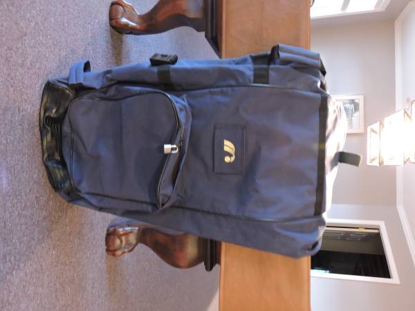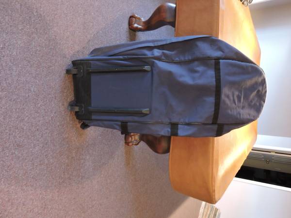 Blue color approx. 4' in length with pocket for shoes. Zipper closings for top & pocket with locks.