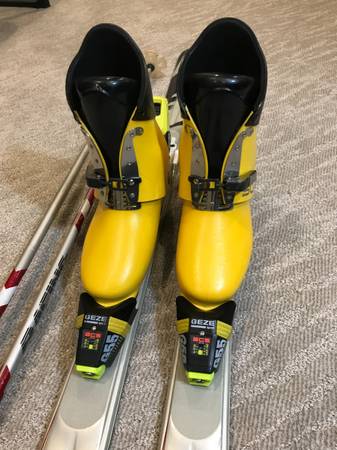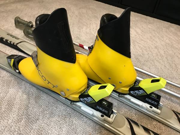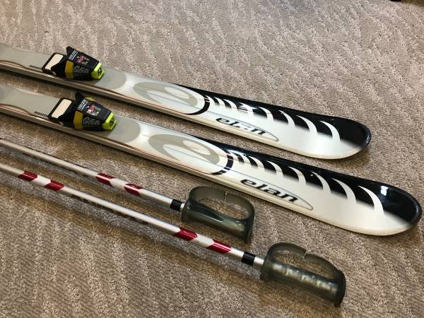 Elan Whistler 160 cm skis with Geze Bindings and Poles - Very good condition $75 - European made - Will sell with Scott Vintage 7 1/2 ski boots for $125