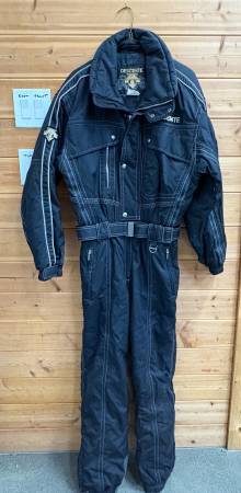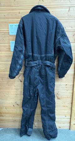 Men’s Descente insulated ski suit, size medium, in excellent condition. Colour black, it has multiple pockets including a chest one to keep phone and valuables safe. This sought after, top quality brand is comfortable, warm, roomy and easy to wear. The suit measures 85” in total length, 24” from shoulder to end of sleeves and a 30” inside leg seam.