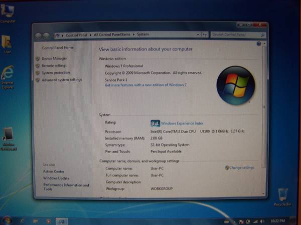 Intel (R) Core (TM) 2 Duo U7500 @ 1.07GHz Processor
