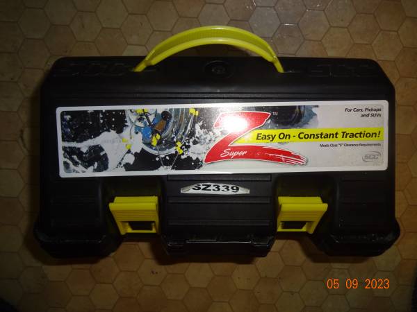 Brand New tire chains set - SZ 339. Please see applicable tire sizes on the photos. $19, OBO Pick up in Chilliwack