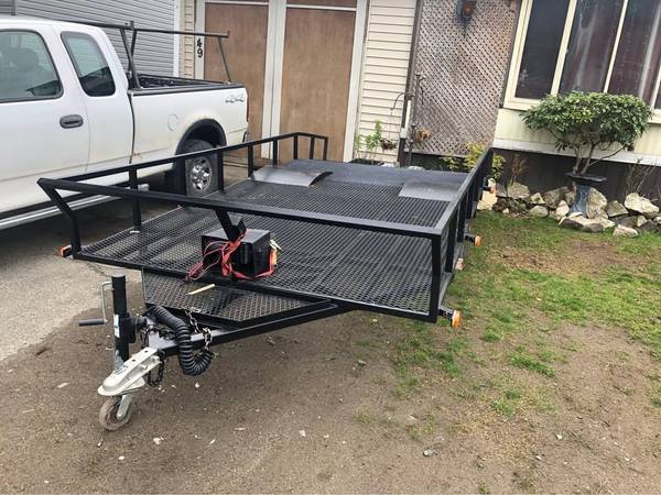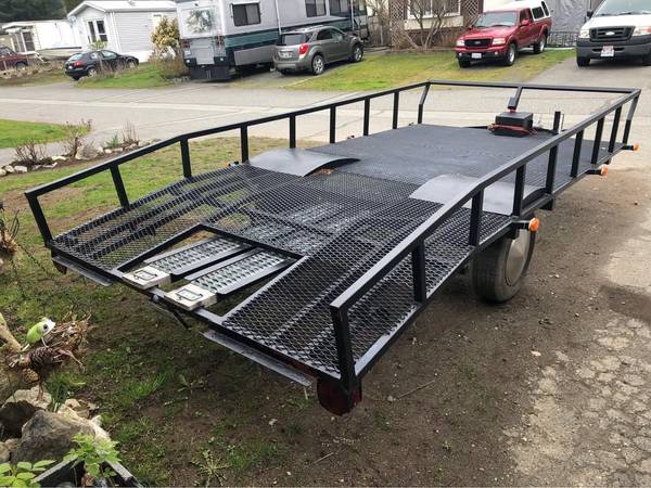 17ft x 7ft single axle metal deck trailer built for a light car, side by side or atv. Electric breaks. Comes with a winch and ramps. Asking $4000 or trade for a dump trailer or duel axle trailer. Doesn’t have to be in great shape as long as it functions. Feel free to email me with questions and to pick it up.