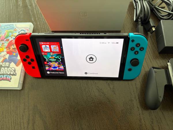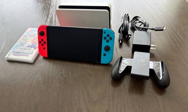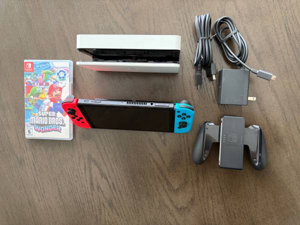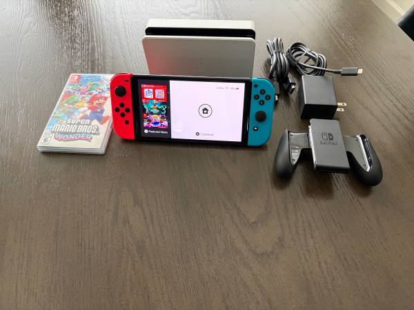 Nintendo Switch OLED model in excellent condition. Includes all cables and accessories as well as a game, Super Mario Bros. Wonder $325