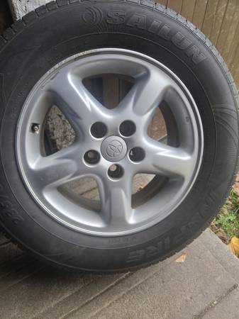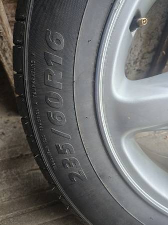 235/75/16 On Toyota mags Tires were bought in August, maybe 3,000 kilometers Paid almost 800.00 Good deal